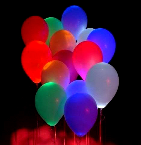 Запуск шаров с подсветкой, гелиевые шарики с бенгальскими огнями. Это шары, наполненные гелием. В каждый шарик помещается маленький "огонек". Часто используется такой запуск на мероприятиях, где салюты и фейерверки запрещены. Смотрятся улетающие "светлячки" потрясающе! По такому же принципу улетают шарики с бенгальскими огнями, только бенгальский огонь привязывается за ленточку шарика. Участники торжества поджигают бенгальские огни и отпускают воздушные шары. Это зрелище не менее эффектное.