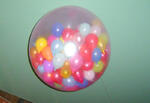 Шар сюрприз внесёт свой шарм в ваш праздник. Если в зале помимо шара сюрприза планируется оформление воздушными шарами, то такой шар легко затеряется среди шаров с гелием и в нужный момент станет действительно сюрпризом для собравшихся. Шар сюрприз- воздушный шар размером около 1м., наполненный маленькими шариками. Для свадеб в качестве наполнения шара можно использовать кроме шаров лепестки роз, конфетти, записки для конкурсов... Такой спецэффект подходит для небольших залов.